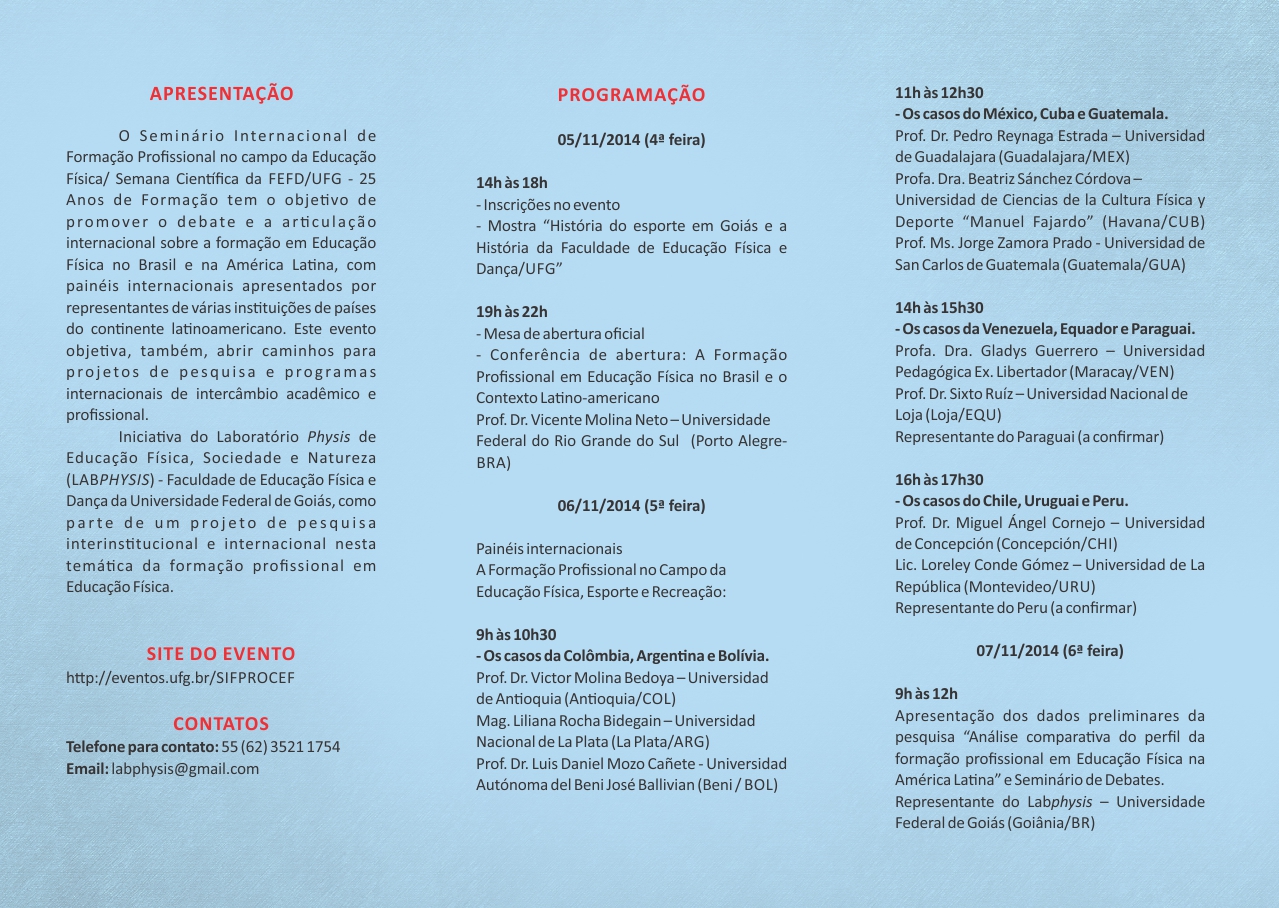 I Seminário Internacional de Formação Profissional no Campo da Educação Física e Semana Científica da FEFD-UFG 25 anos de Formação
